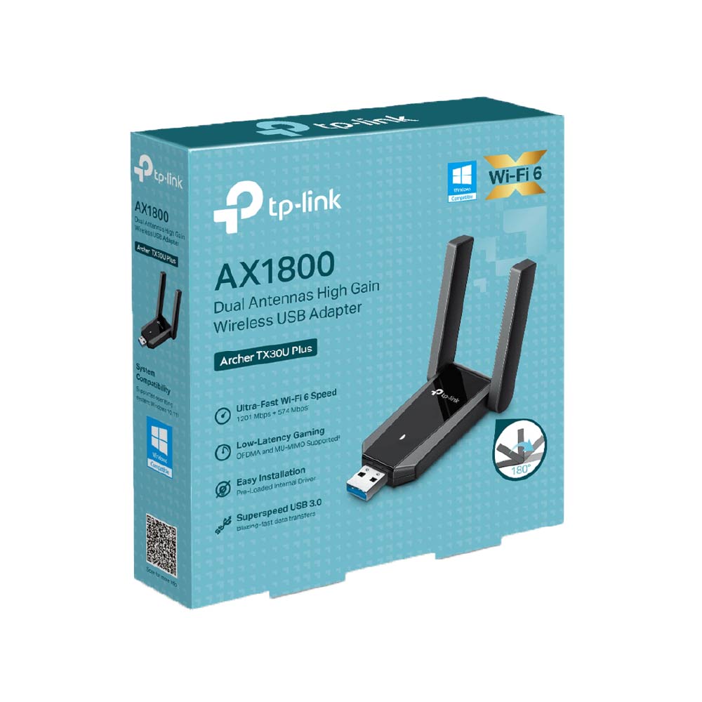 El TP-Link Archer TX30U Plus es un adaptador USB con tecnología WiFi 6 diseñado para ofrecer conexiones más rápidas, estables y eficientes. Con velocidades de hasta 1800 Mbps, es ideal para streaming en alta definición, gaming online y trabajo remoto sin interrupciones. Sus dos antenas externas de alta ganancia mejoran notablemente la cobertura y estabilidad de la señal, incluso en entornos con interferencias. Incorpora tecnologías avanzadas como MU-MIMO y OFDMA, que optimizan el rendimiento en redes con múltiples dispositivos, mientras que la seguridad WPA3 protege la conexión. Su interfaz USB 3.0 garantiza transferencias rápidas y confiables.