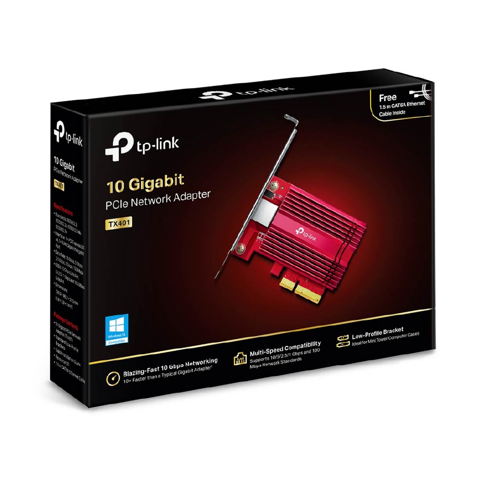 La TL-TX401 de TP-Link es una tarjeta de red PCI Express diseñada para ofrecer velocidades de hasta 10 Gbps, ideal para entornos que requieren transferencias de datos intensivas como servidores, estaciones de trabajo y gaming avanzado. Compatible con PCIe 3.0 x4, incluye cable Ethernet CAT6A para garantizar el máximo rendimiento y estabilidad en la conexión.
