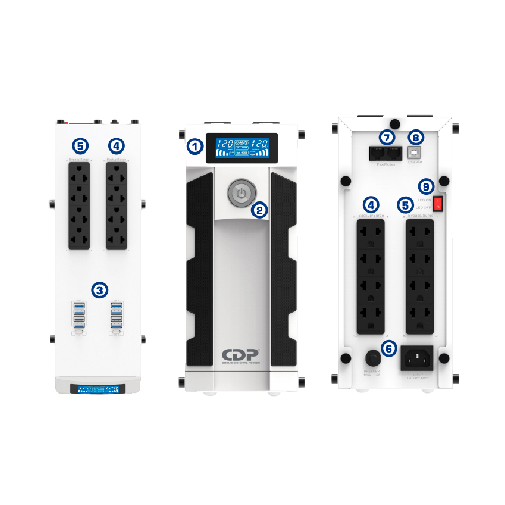 El UPS CDP Gaming G-SMART1516I es una solución avanzada de respaldo y protección eléctrica diseñada para estaciones de juego, computadoras, consolas y equipos electrónicos de alto rendimiento. Con una capacidad de 1500VA / 900W, proporciona energía de respaldo ante cortes eléctricos, permitiendo guardar el trabajo o apagar los equipos de manera segura.